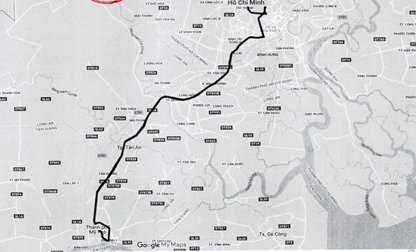 Huớng tuyến xe buýt đi qua 3 địa phương TP. HCM, Long An và Tiền Giang - Ảnh: Sở Giao thông vận tải TP